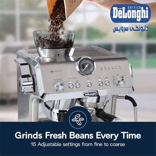مدل EC9555.BK مجهز به امکانات هوشمند متعددی است که فرآیند تهیه قهوه را ساده و دقیق میسازد. این دستگاه قادر به استفاده از دانه قهوه یا پودر قهوه بوده و دارای مخزن آسیاب با ظرفیت ۴۰۰ گرم است؛ بهاین ترتیب برای هر فنجان، دانهها تازه آسیاب میشوند تا طعم و عطر واقعی اسپرسو را به شما هدیه دهند.اسپرسو ساز دلونگی